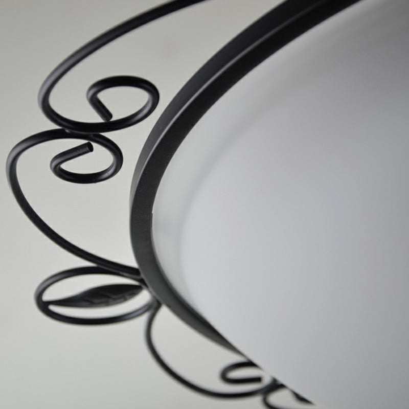 Traditionelle schwarze Deckenleuchte mit kuppelförmiger Deckenmontage, 3 Opalglasköpfen und Wirbeldekor