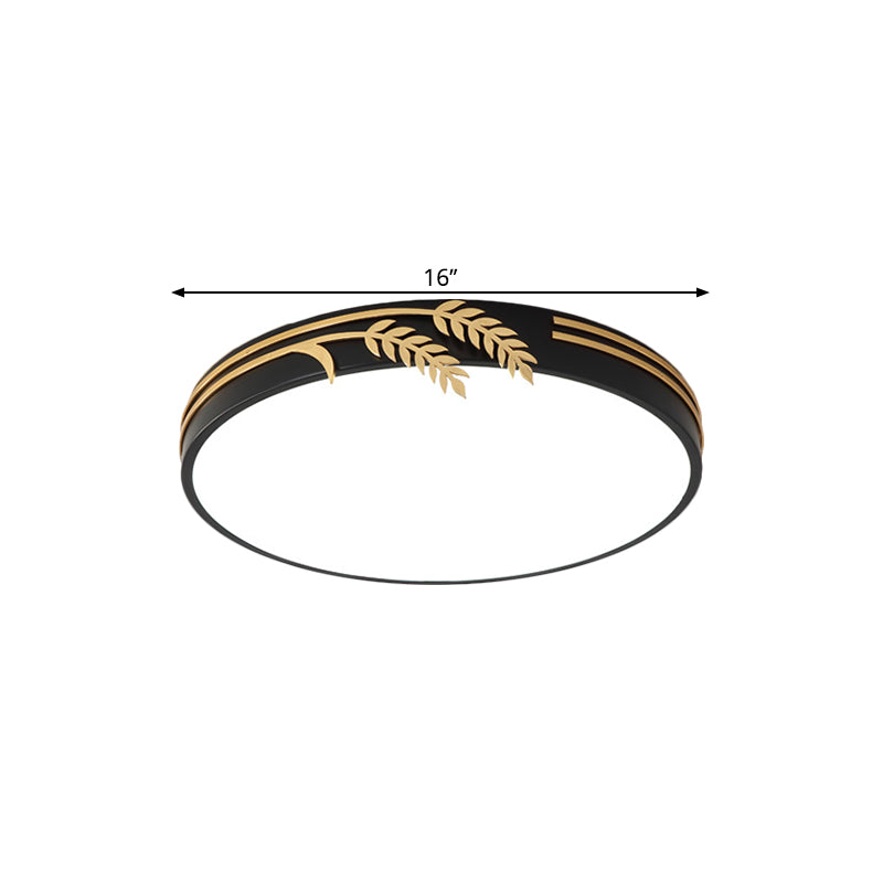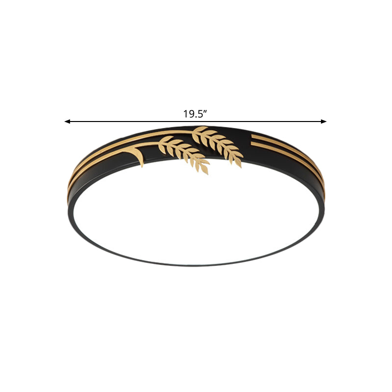 Einfache schwarze runde LED-Deckenleuchte mit Weizendeko – warmes/weißes Licht, 16"/19,5" breit