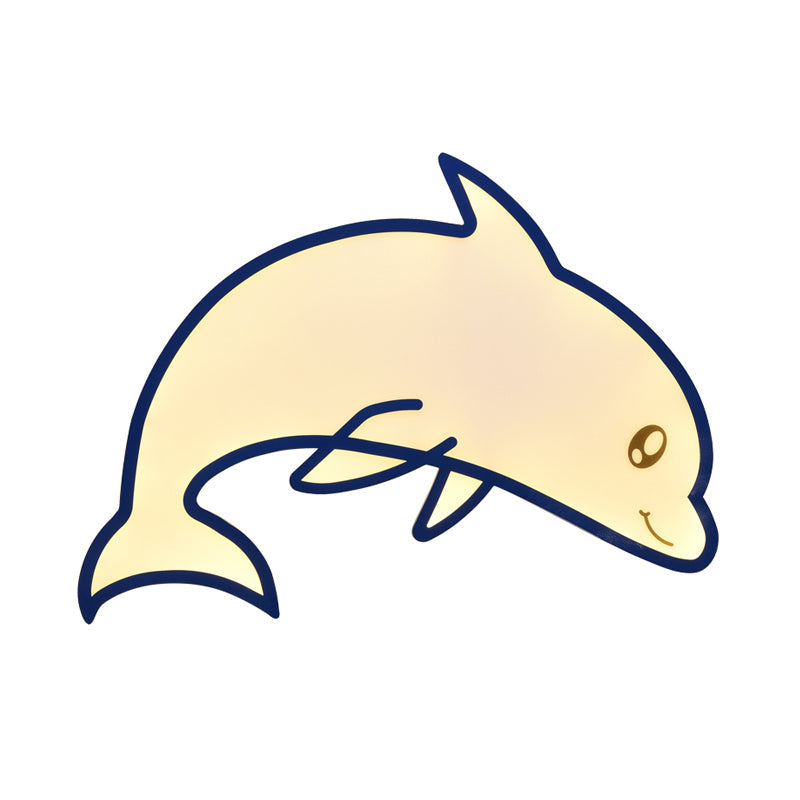 Moderne Deckenleuchte mit blauem Delfin-Cartoon-Motiv, integrierter LED und Acryl – Unterputzleuchte