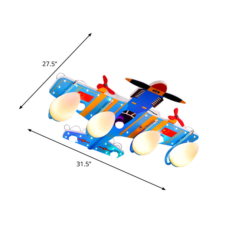 Blue Jet 4-Head Ceiling Light For Boys Bedroom - Kids Style Acrylic Semi Flush Mount