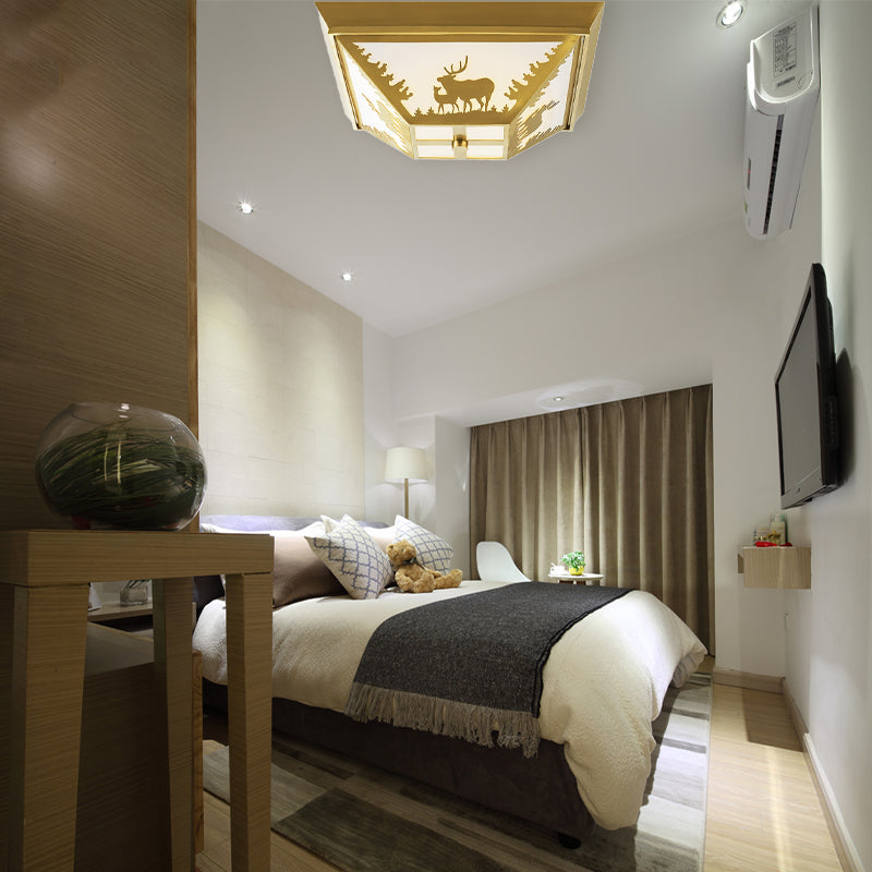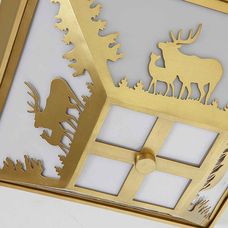 Trapezoid Brass Flush Mount Vintage Metal Ceiling Lamp With 4 Bulbs Ideal For Living Room Lighting
