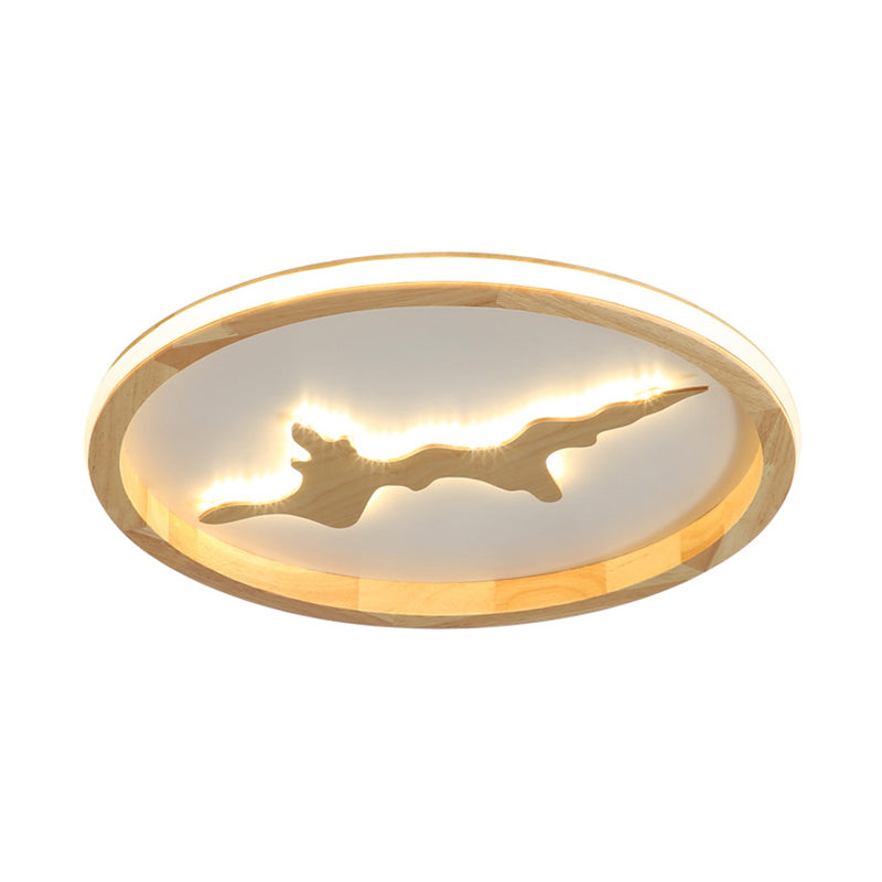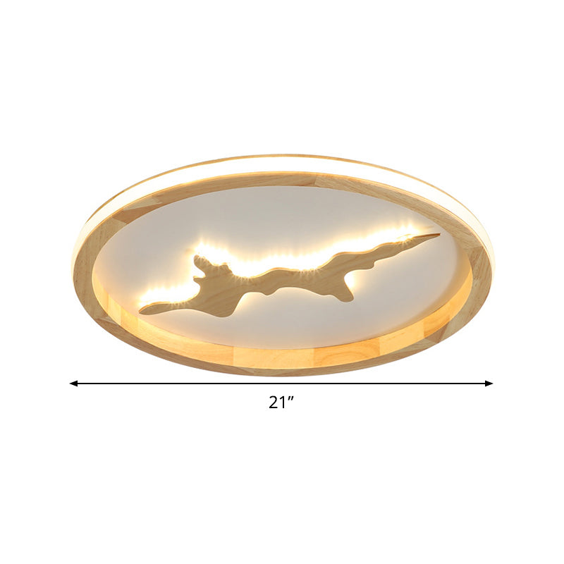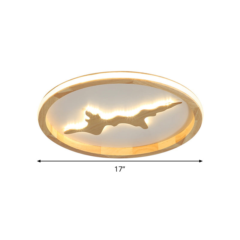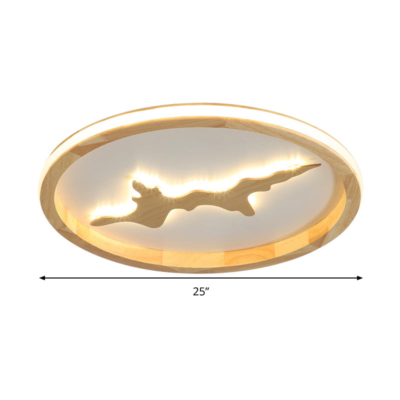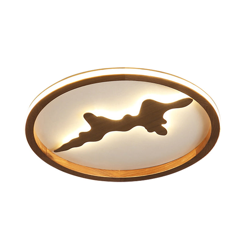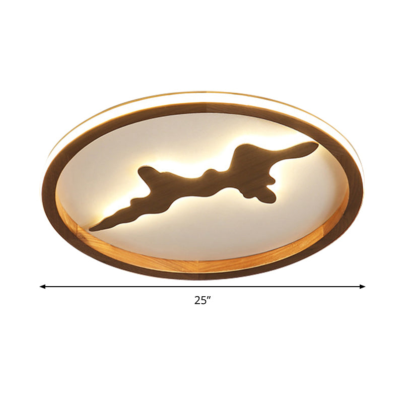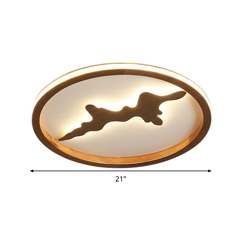 Minimalist Wood Circle Ceiling Light Dark Brown/Light Brown Led Flush Fixture - 17’/21’/25’
