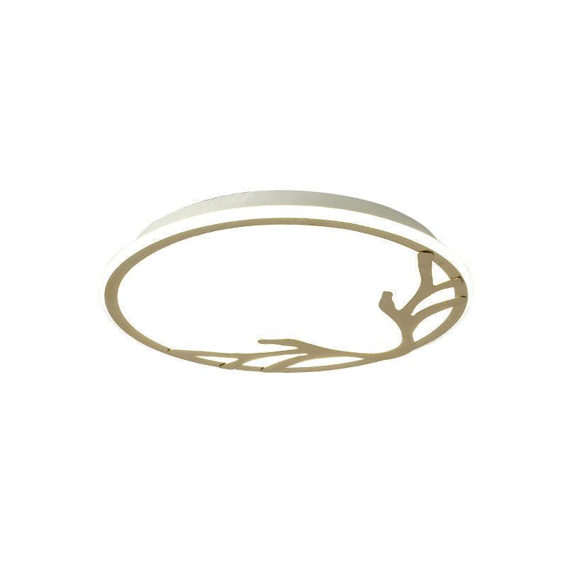 Gold Nordic Circle Ceiling Lamp With Antler Decoration | Led Flush Mount Light