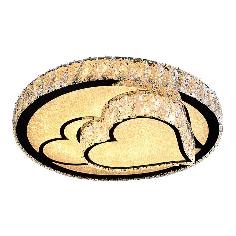 Modern Crystal Led Ceiling Light Fixture For Dining Room - Circular Flush Design With Stainless