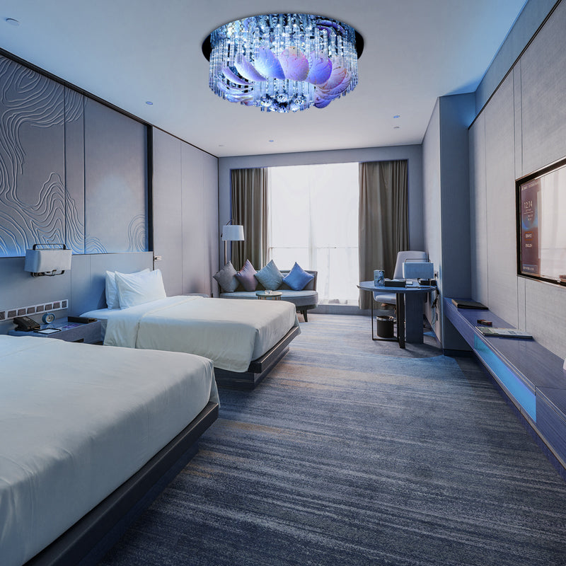 LED-Deckenleuchte aus klarem Kristall, kreisförmig, modern, 49,5 cm/59,4 cm/80,9 cm breit, mit Blattglas-Dekoration