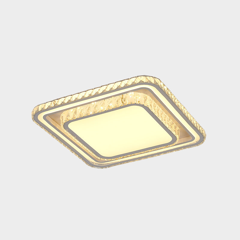 Modern Led Crystal Flush Mount Ceiling Lamp In White / Square Plate