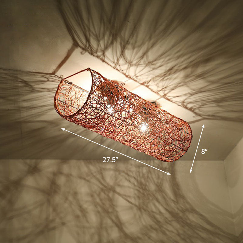 Simplicity Rattan Deckenleuchte - Zylindrische Restaurantbeleuchtung