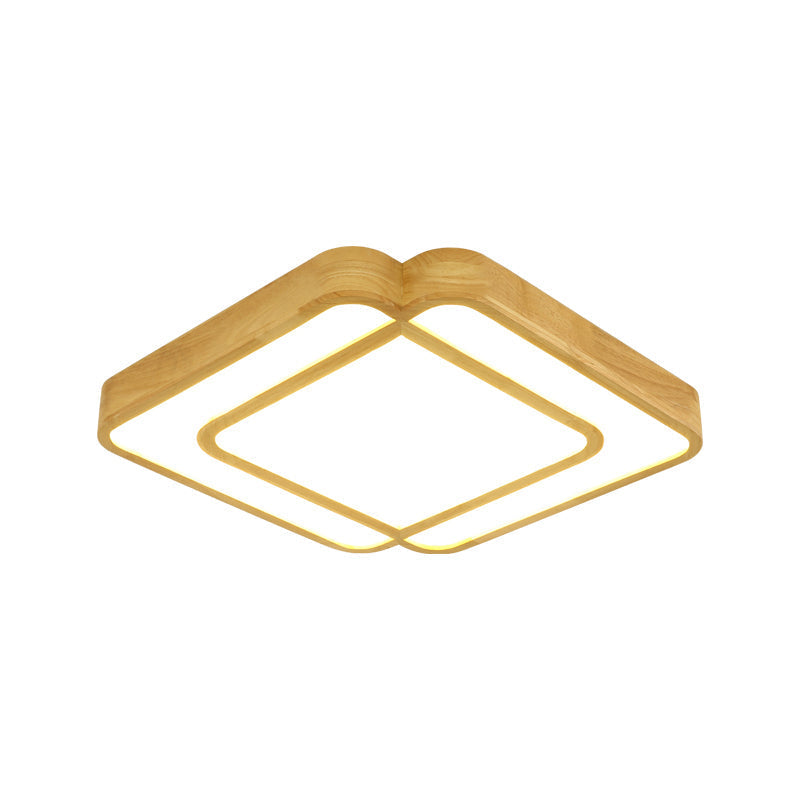 Wooden Led Flush Mount Lamp In Beige - Diamond Shape Simple & Stylish