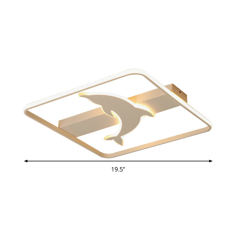 Dolphin Ceiling Mount Light - Led Flush Acrylic Animal Lamp In White Finish / Square