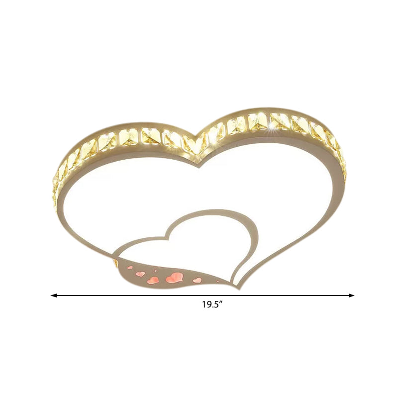Moderne LED-Deckenleuchte aus Acryl mit Doppelherz – weiße Deckenleuchte für Kinderzimmer mit klarem Kristall