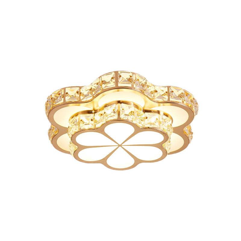 Contemporary Led Crystal Drum/Flower Corridor Flushmount Ceiling Light - White/Gold Finish Gold