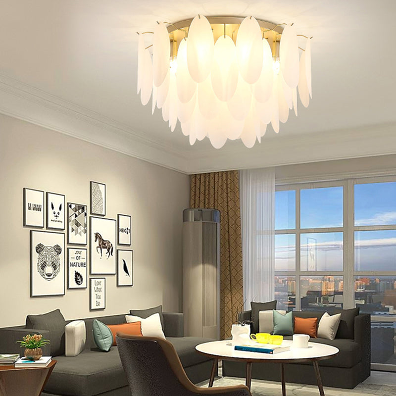 Contemporary White Glass Feather-Shaped Flush Mount Lamp - 22.5’/28’ Wide 6-Light Living Room