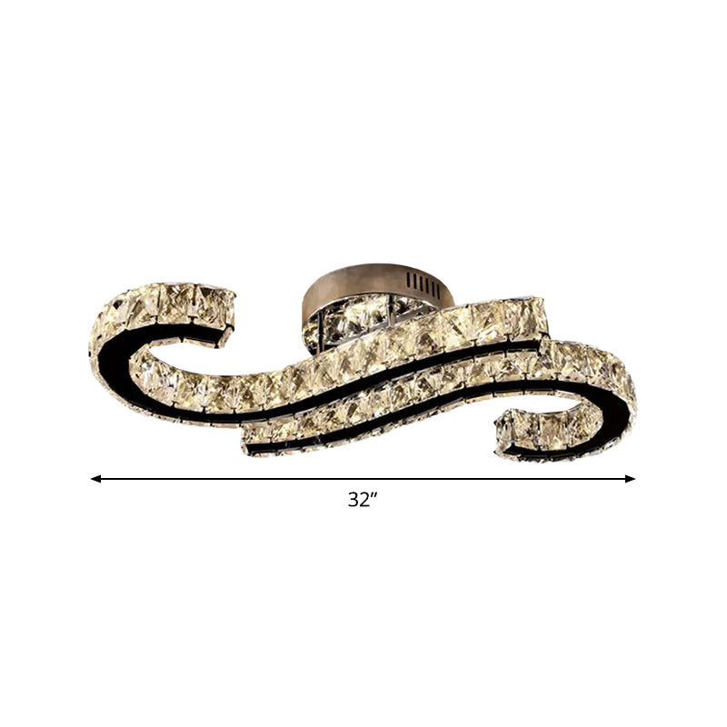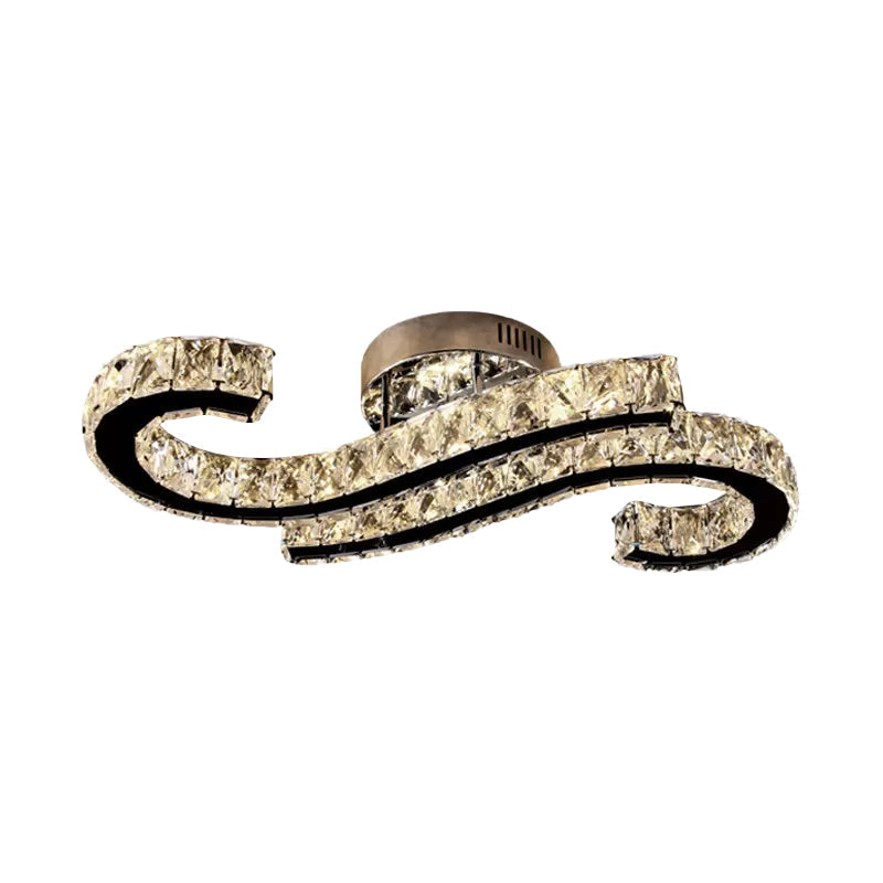 Sleek Crystal Stainless-Steel Ceiling Flush With Led Semi Mount Lighting In Warm/White Light