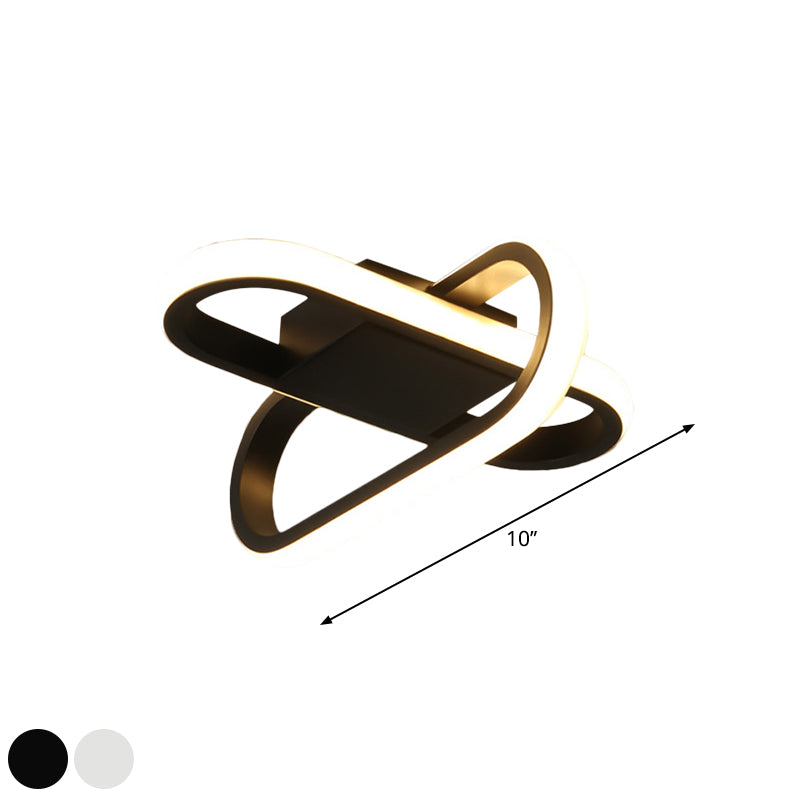 Modern Hotel Led Flush-Mount Ceiling Lamp In Black/White With Acrylic Shade - Warm/White Light White