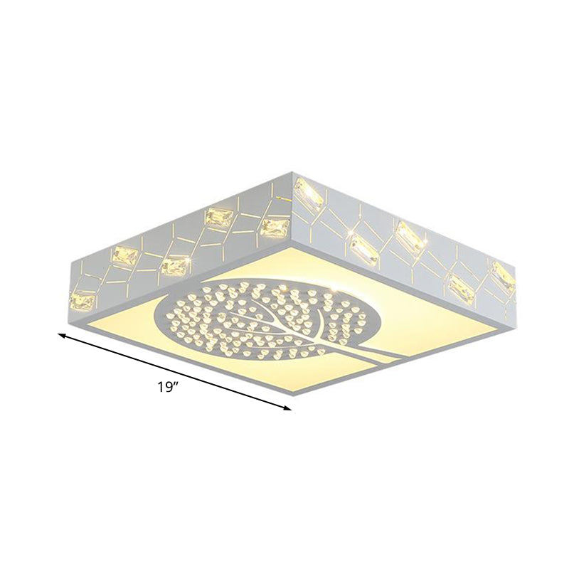 Nordic White K9 Crystal Led Ceiling Light - Square Flush Mount With 3 Lighting Options / Warm