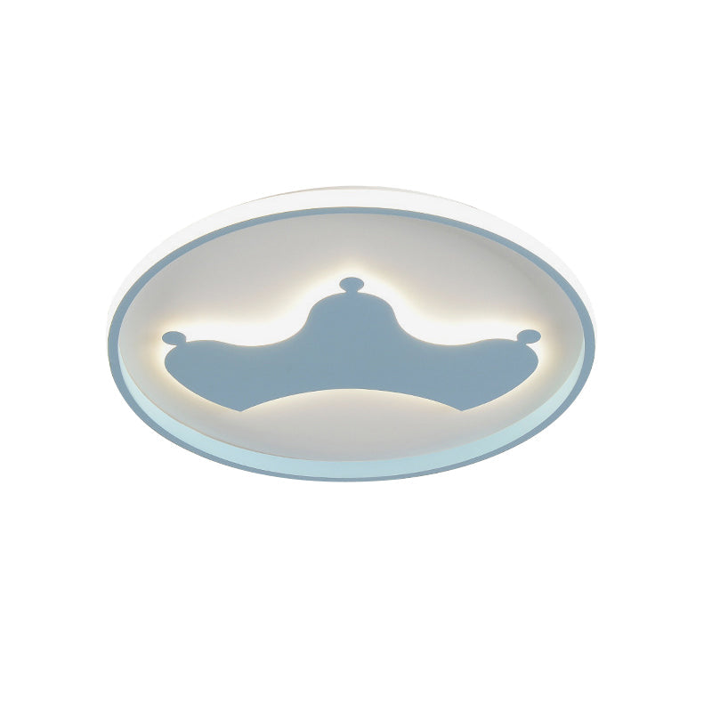 Kid Crown Led Flushmount Light In Pink/Blue - Ultra-Thin Bedroom Ceiling Fixture Blue / B