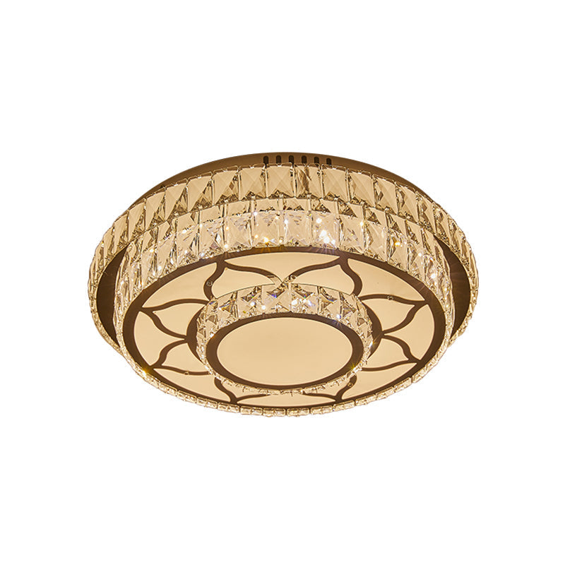 Modernist Chrome Led Ceiling Lamp With Beveled Crystal For Sleeping Room
