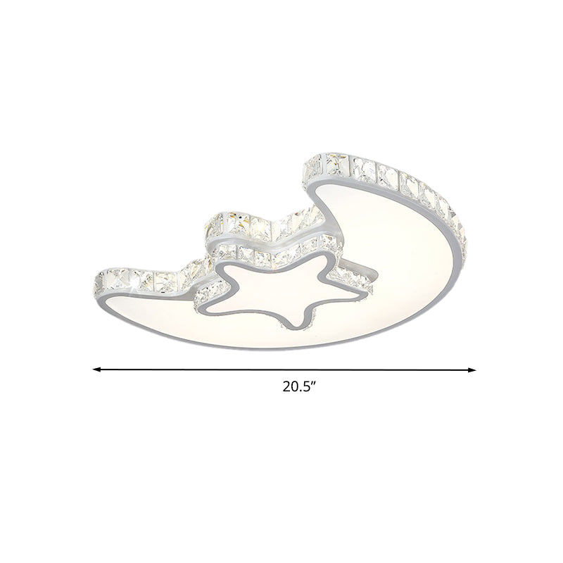 Modern Led Bedroom Ceiling Light Fixture - White Flush Mount With Star Moon Crystal Shade