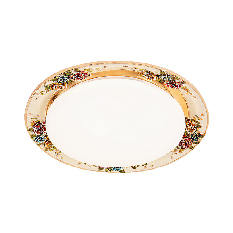 Led Flush Mount Ceiling Light - Traditional Grey/Red/Green With Round Resin Shade Bedroom Lighting