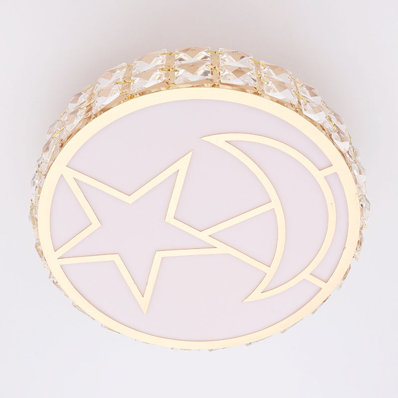 Contemporary Circle Crystal Led Flush Mount Ceiling Light For Dining Room In White