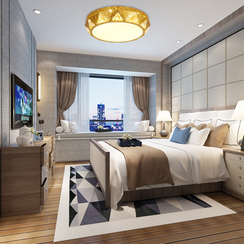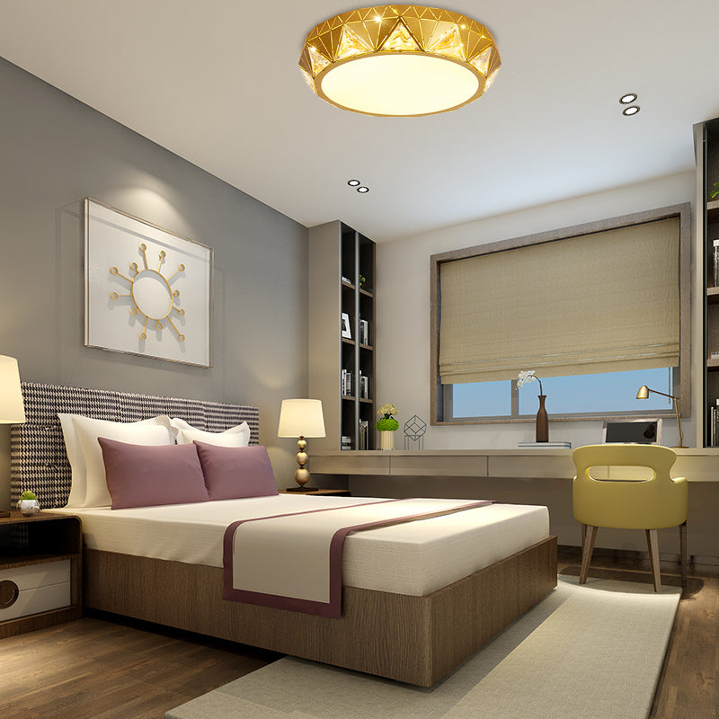 Modern Geometric Led Ceiling Lamp With Crystal Accent In White/Gold 12/18 W Gold / 12
