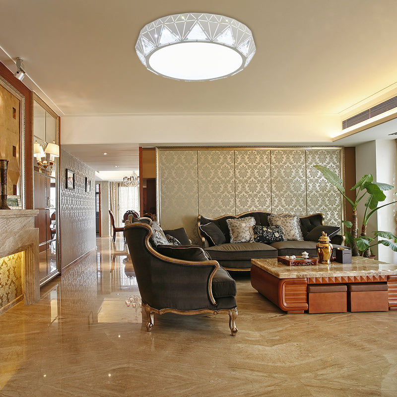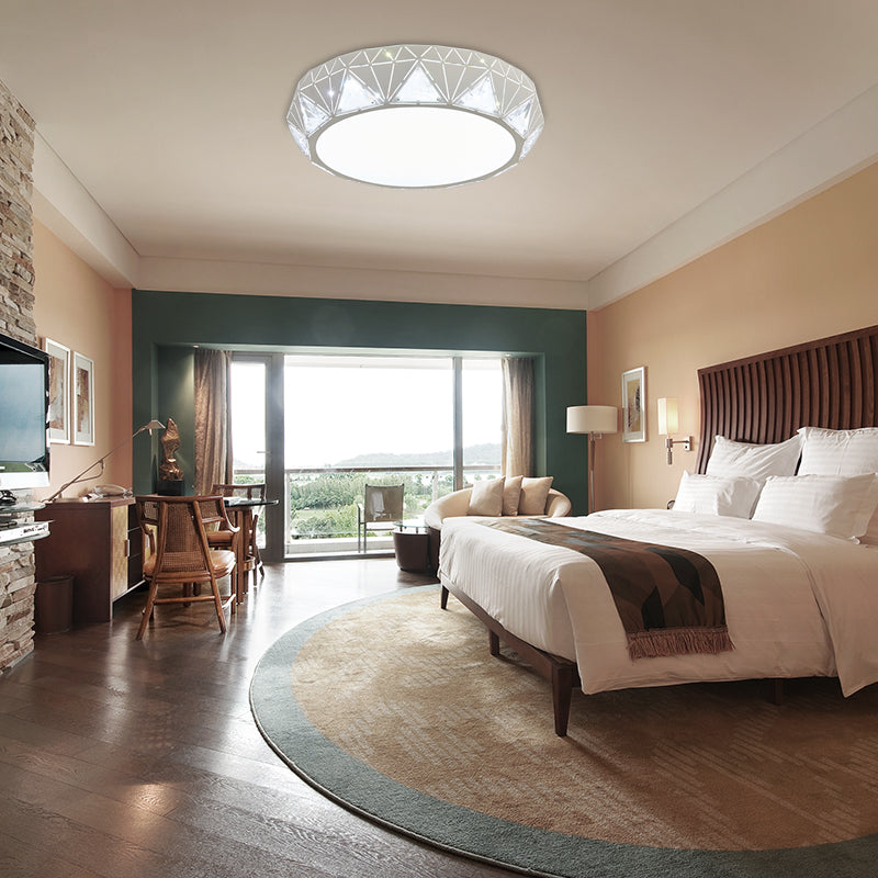 Modern Geometric Led Ceiling Lamp With Crystal Accent In White/Gold 12/18 W White / 18