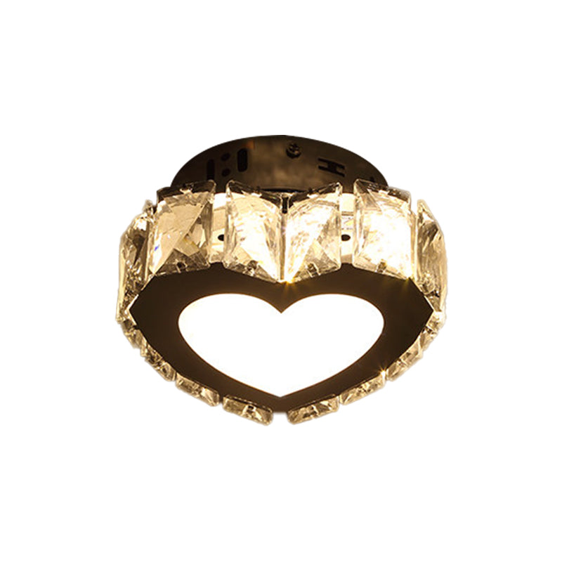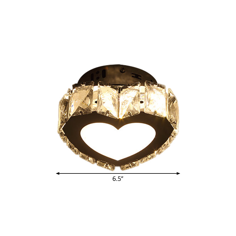 Modern Led Crystal Flush Light For Hallways With Chrome Finish / Loving Heart
