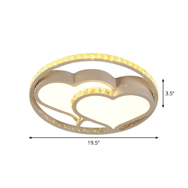 Minimalist Led Parlor Ceiling Light - White Flush Mount Lighting With Crystal Heart/Flower Shade