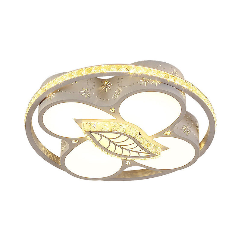 Minimalist Led Parlor Ceiling Light - White Flush Mount Lighting With Crystal Heart/Flower Shade /