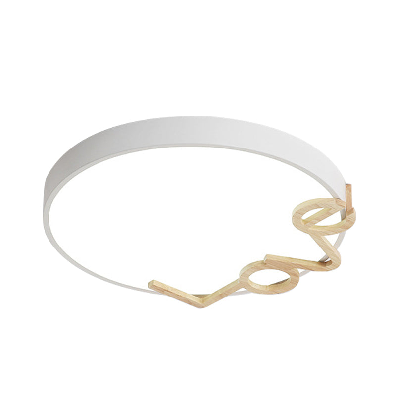 Love - Shape Wood Deco Led Flush Mount Lamp In 3 Colors White