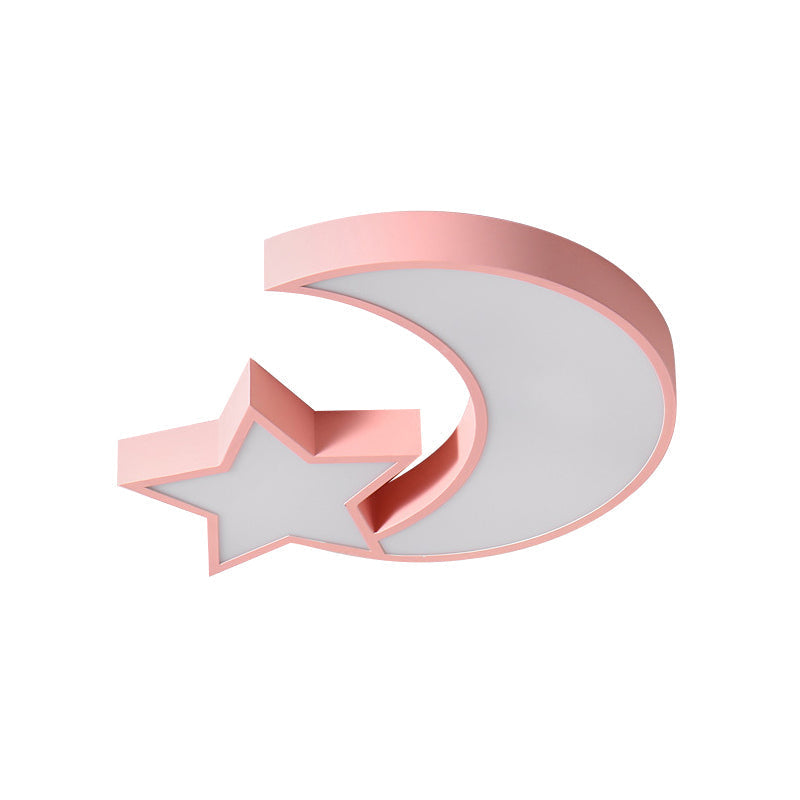 Kid’s Bedroom Led Ceiling Lamp - Metal Acrylic Flush Mount Light With Star & Moon Design Pink /