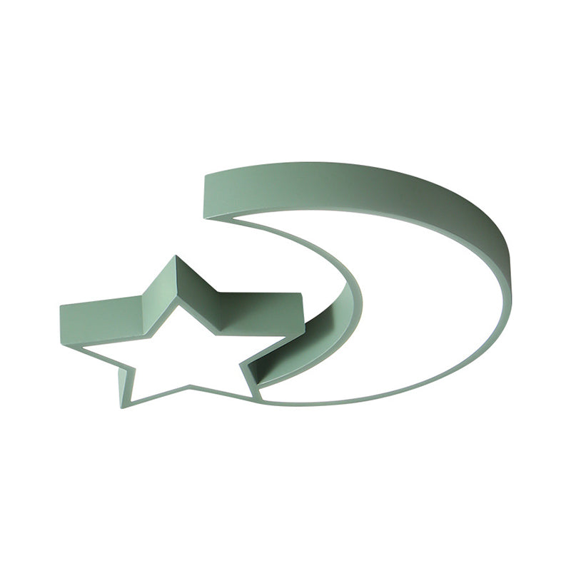 Kid’s Bedroom Led Ceiling Lamp - Metal Acrylic Flush Mount Light With Star & Moon Design Green /