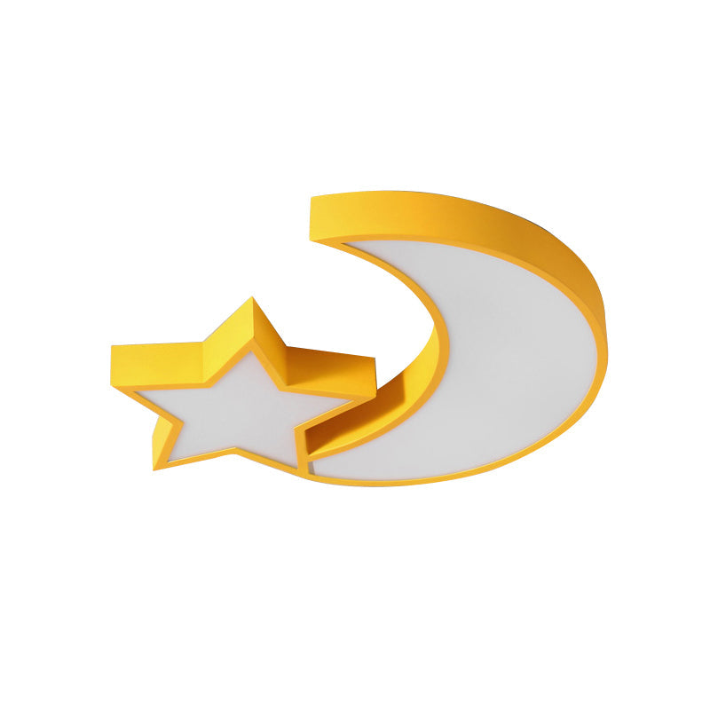 Kid’s Bedroom Led Ceiling Lamp - Metal Acrylic Flush Mount Light With Star & Moon Design Yellow /