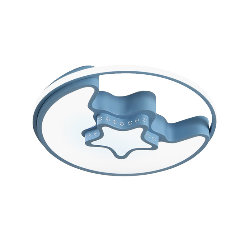 Modern Metal Crescent And Star Ceiling Mount Light - Flush For Nursing Room Blue / White