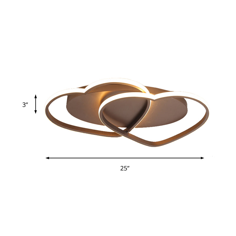 Romantic Double Heart Flush Mount Ceiling Lamp In Brown – Perfect For Study Rooms