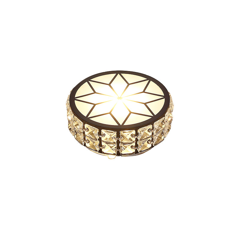 Minimalist Black Metal Round Led Ceiling Spotlight With Crystal Inserts - Flush Mount Lighting /