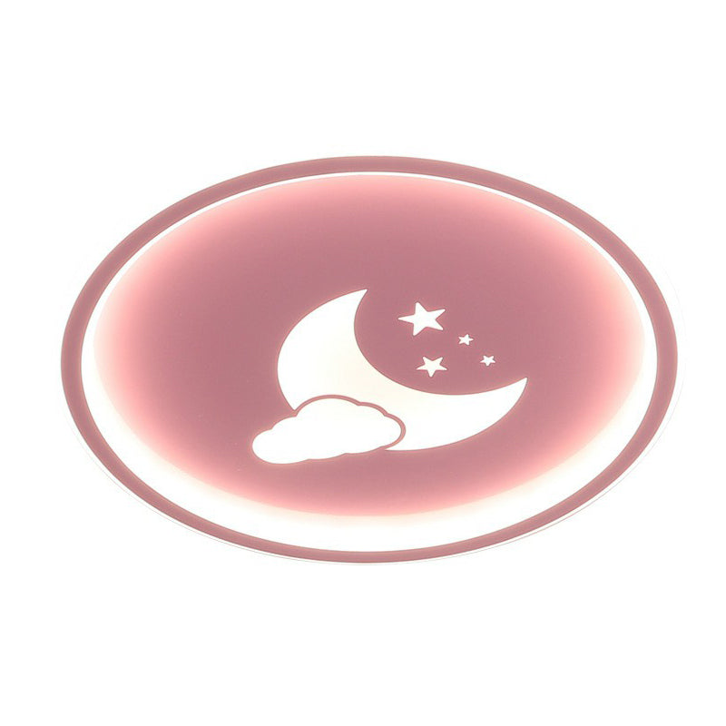 Nordic Style Led Flush Mount Ceiling Light With Star And Moon Pattern - Metallic Ring Shaped Pink /