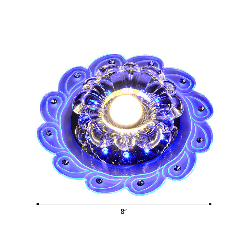 Diese minimalistische LED-Deckenleuchte „Blossom“ mit klarem, abgeschrägtem Kristallschirm ist eine moderne und stilvolle Deckenleuchte. Die Leuchte besteht aus klarem, abgeschrägtem Kristall, der ein weiches und helles Licht abgibt. Die Leuchte ist 20 cm breit und 2,5 cm hoch und bündig eingebaut, sodass sie nicht zu viel Platz an Ihrer Decke einnimmt. Die Leuchte wird außerdem mit einer 39-Watt-SMD-LED-Lampe geliefert, die ein mehrfarbiges, violett-blaues Licht abgibt. Sie können zwischen 110 V–120 V oder 220 V–240 V wählen. Sie passt in die meisten Decken mit Standardgröße. Diese Leuchte eignet sich perfekt für moderne und zeitgenössisch eingerichtete Wohnungen.