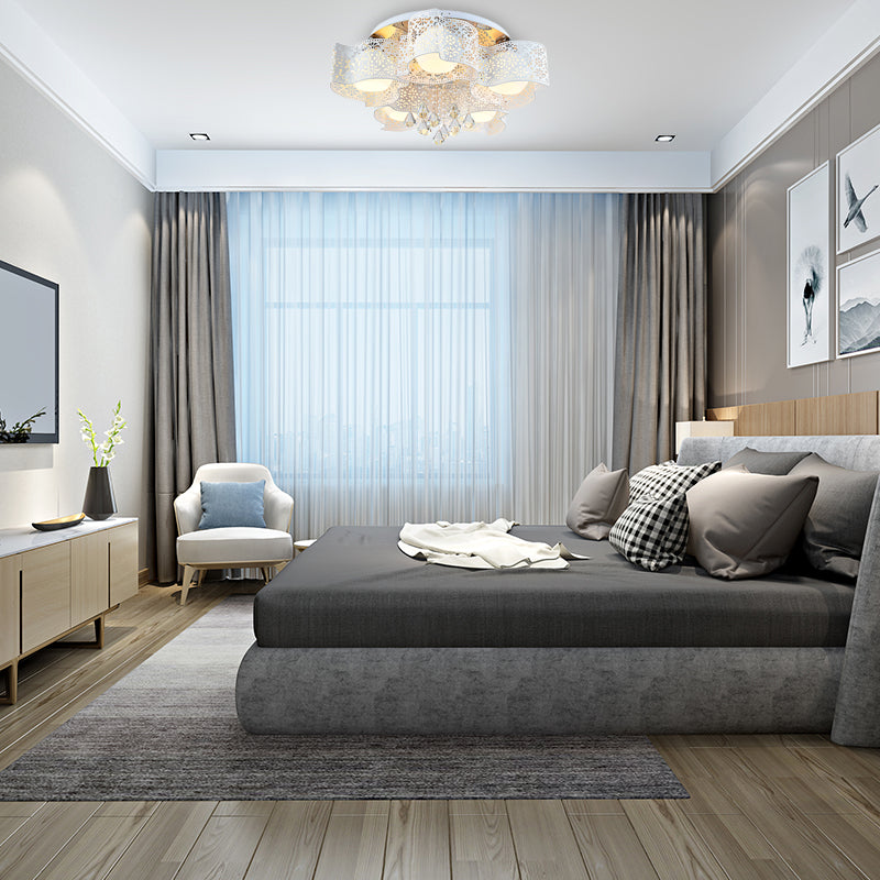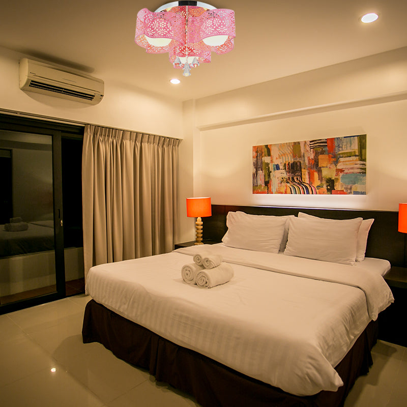 Diese modernistische Deckenleuchte mit geätztem Blumenmotiv verleiht Ihrem Zuhause einen Hauch von Modernität. Sie besticht durch ihr schlichtes Design und ist aus Metall gefertigt, was ihr eine robuste Bauweise verleiht. Der Lampenschirm aus Opalglas ist in Rosa oder Weiß erhältlich, sodass Sie die Farbe wählen können, die am besten zu Ihrer Einrichtung passt. Sie benötigt je nach Bedarf fünf oder drei Glühbirnen und verfügt über einen E26/E27-Sockel.