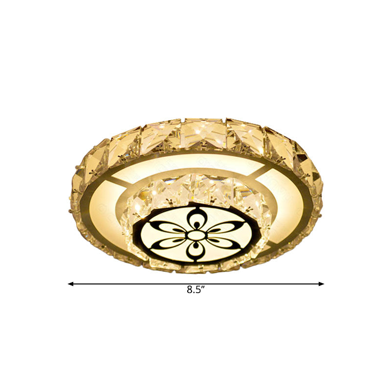 Modernist Flush Mount Led Crystal Ceiling Light In White With Flower Pattern Warm/White / Warm Round