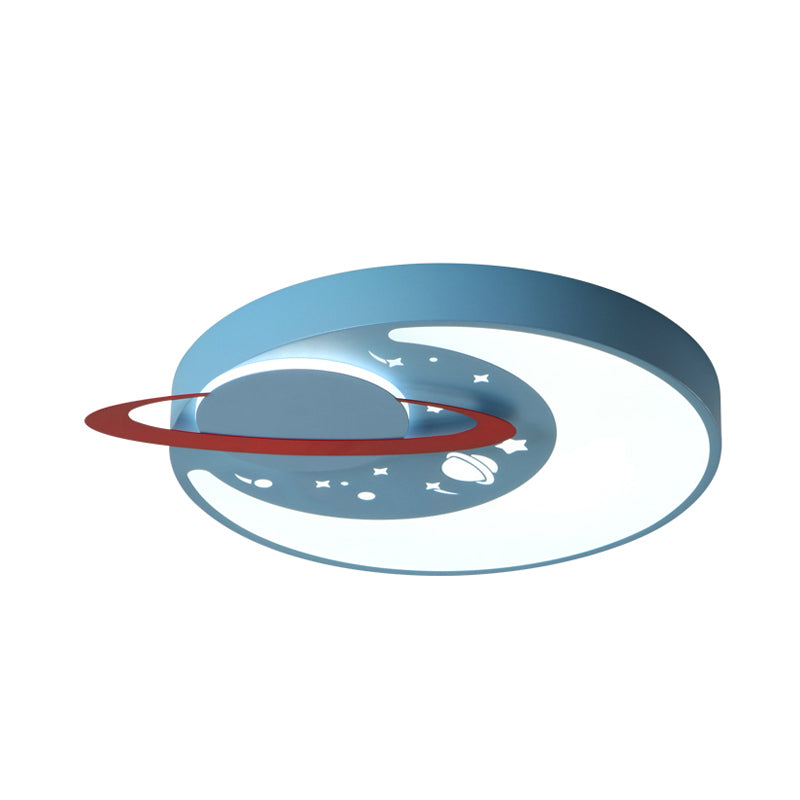 Children’s Led Flush Mount Light Fixture In White/Blue With Moon And Planet Design Blue