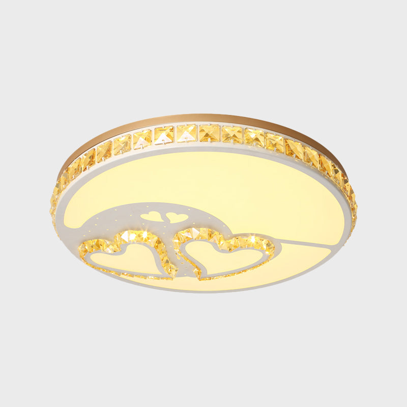 Minimal Moon Crystal Led Ceiling Light With White Leaf/Heart/Star Pattern / Loving Heart