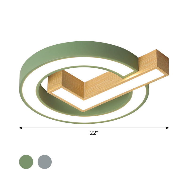 Nordic Checkmark Wood Flush Mount Lamp - 18/22 Inches Wide Led Ceiling Lighting Grey/Green