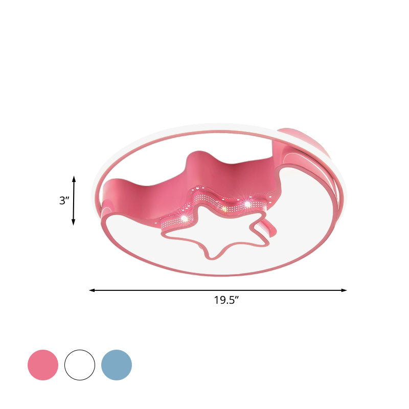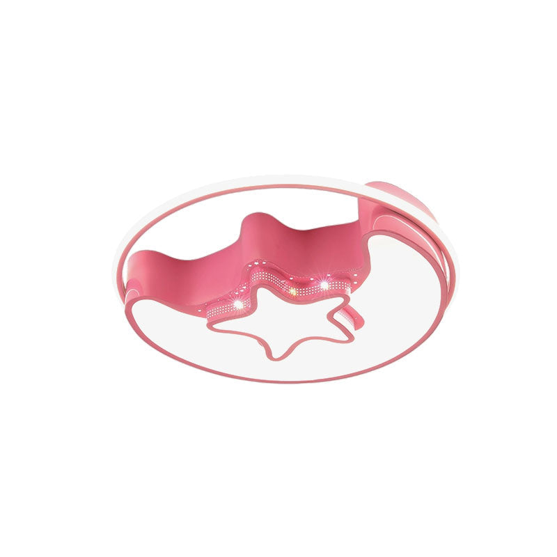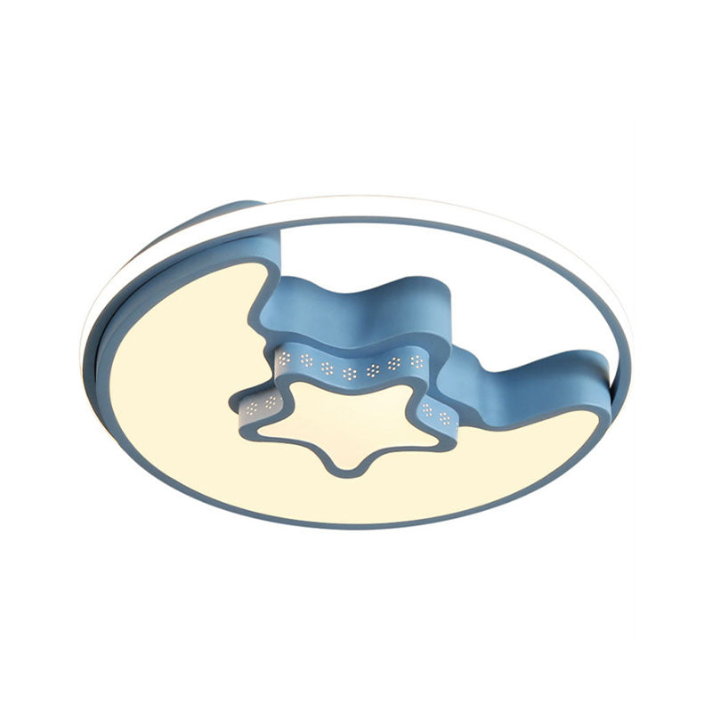 Nordic Led Ceiling Fixture With Moon And Star Flush Mount Spotlight: White/Pink/Blue Acrylic Shade