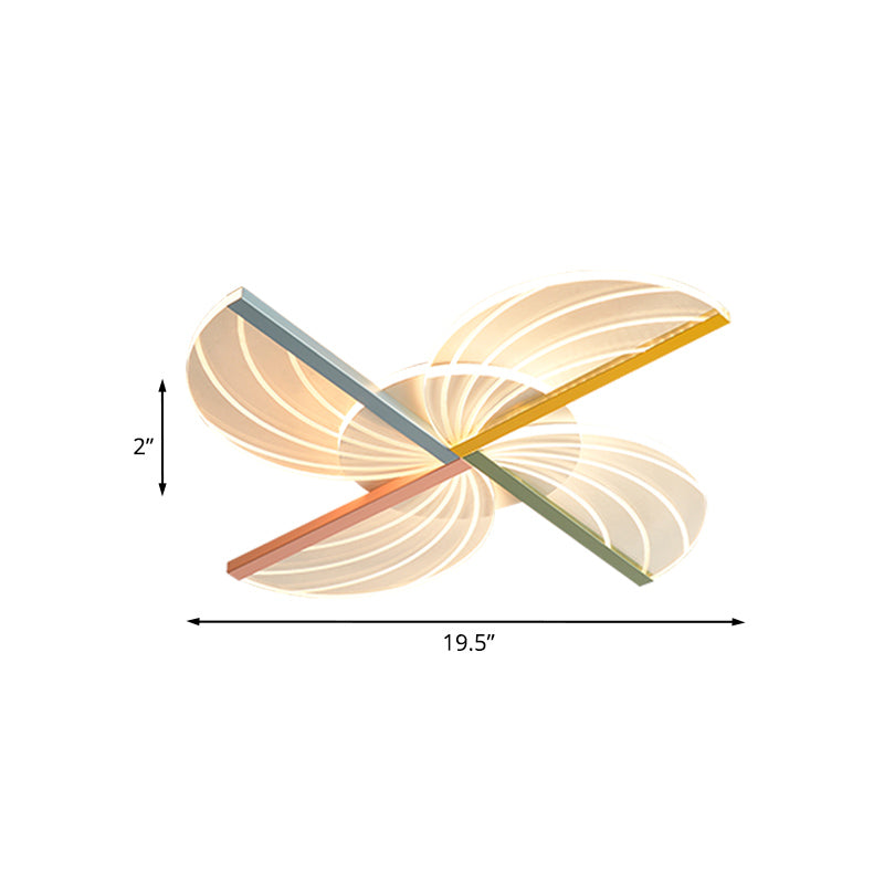 Modern Nordic Led Flush Bedroom Lamp In White With Clear Acrylic And Windmill Design