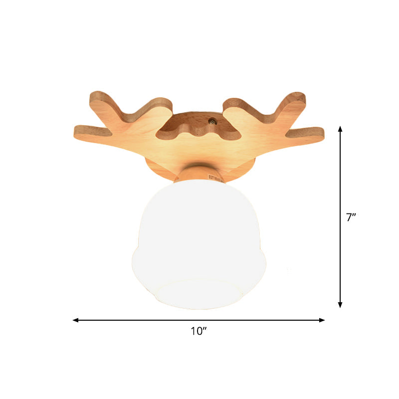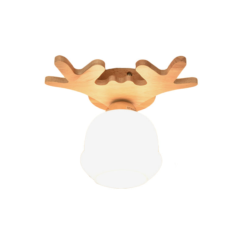 Opal Glass Led Ceiling Fixture With Wood Antler/Square/Round Design - Beige Flushmount / Antler