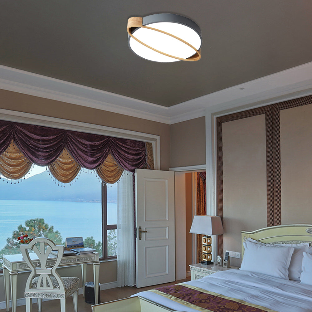 Nordic Acrylic Ceiling Mount Lamp With Led Flushmount Lighting In White/Green/Grey Oval Wood Insert