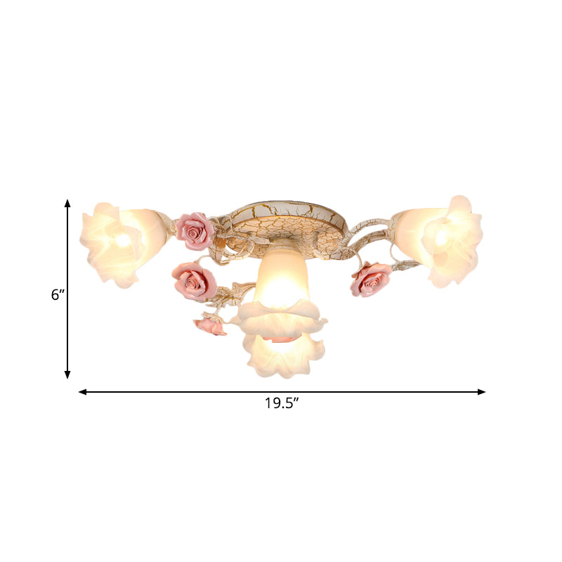 American Flower Milk Glass Morning Glory Ceiling Light - Pink Semi Flush Mount With 4/6 Heads 6 /
