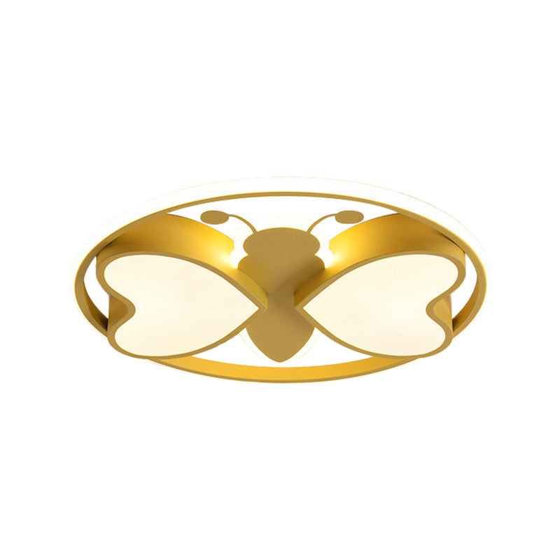 Modern Led Flush Mount Ceiling Light Fixture With Pink/Blue/Gold Bee Figure Design Gold
