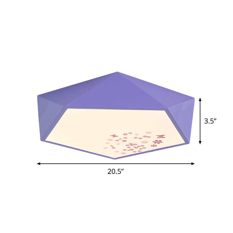 Purple Faceted Pentacle Macaron Iron Led Flush Mount Ceiling Light With Flower Pattern - Stylish